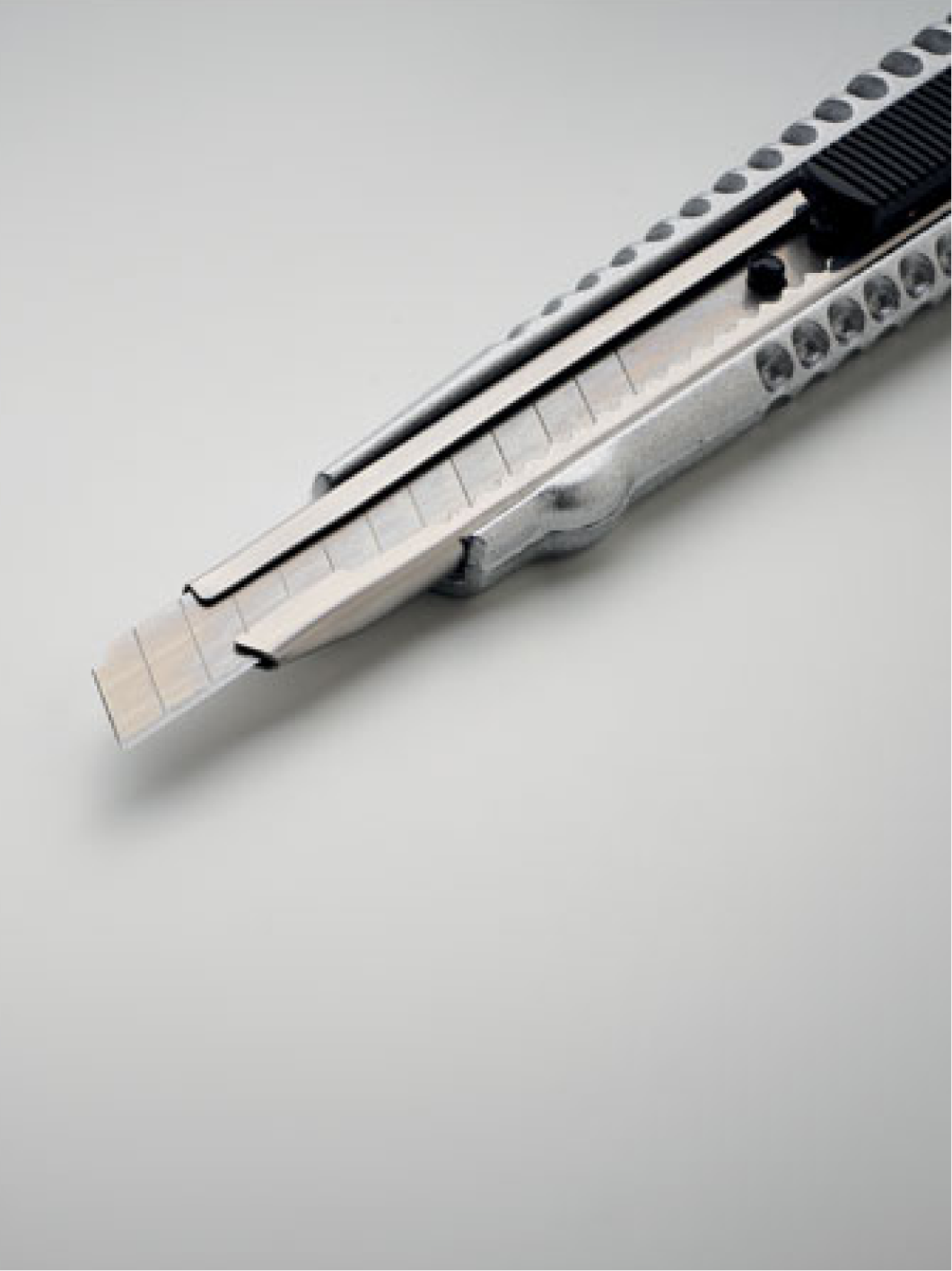 Odolný pracovní řezák s hliníkovým tělem a sadou 13 ocelových čepelí. Praktický a bezpečný nástroj pro přesné řezání v dílně i domácnosti.